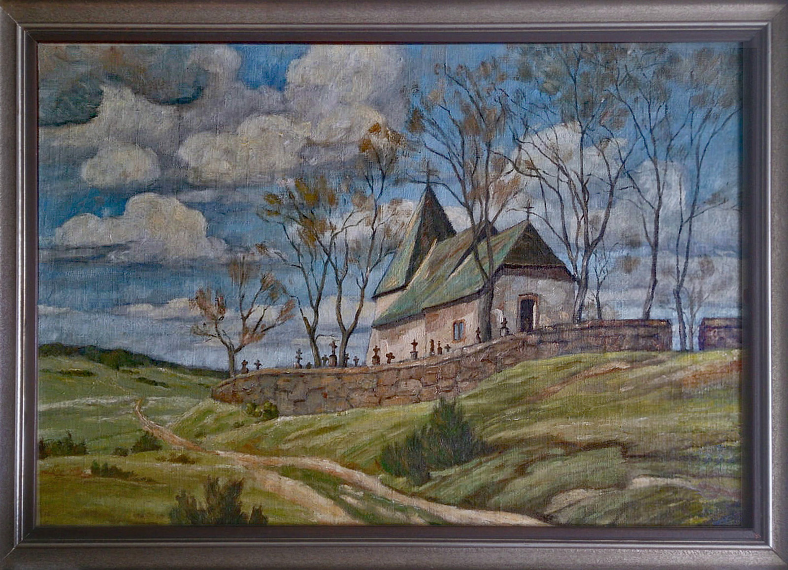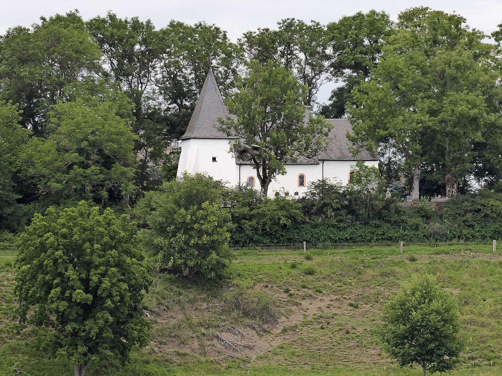 Das Bild meines Onkels muss gegen Mitte/Ende der dreißiger Jahre gemalt worden sein. Es mag sein, dass im Winter und frühen Frühjahr die genaue Bildansicht des Gemäldes wiedergefunden werden kann. Im Sommer, in dem die Fotos dieses Beitrages entstanden sind, war der Bereich unterhalb der Kapelle komplett zugewachsen.