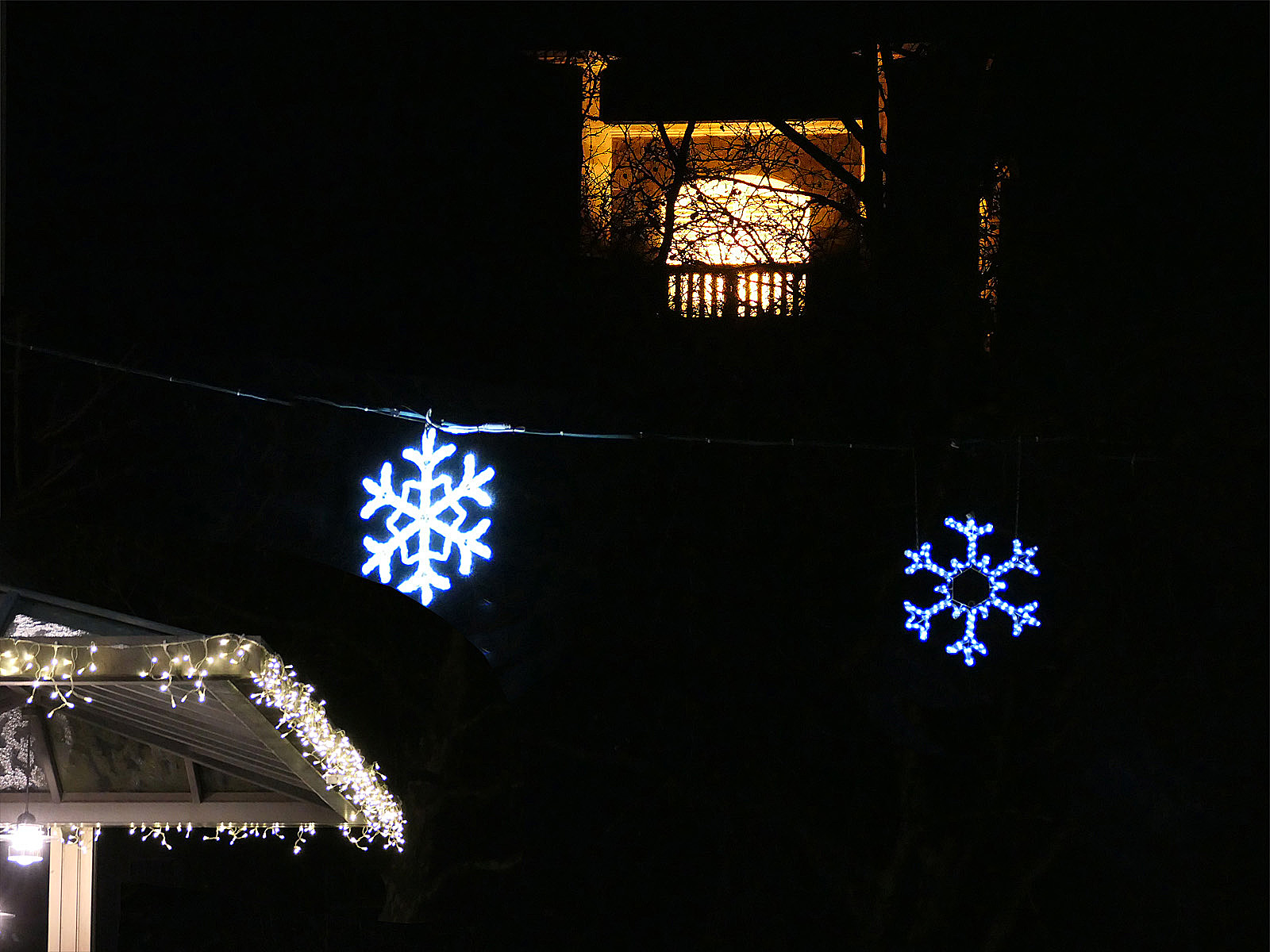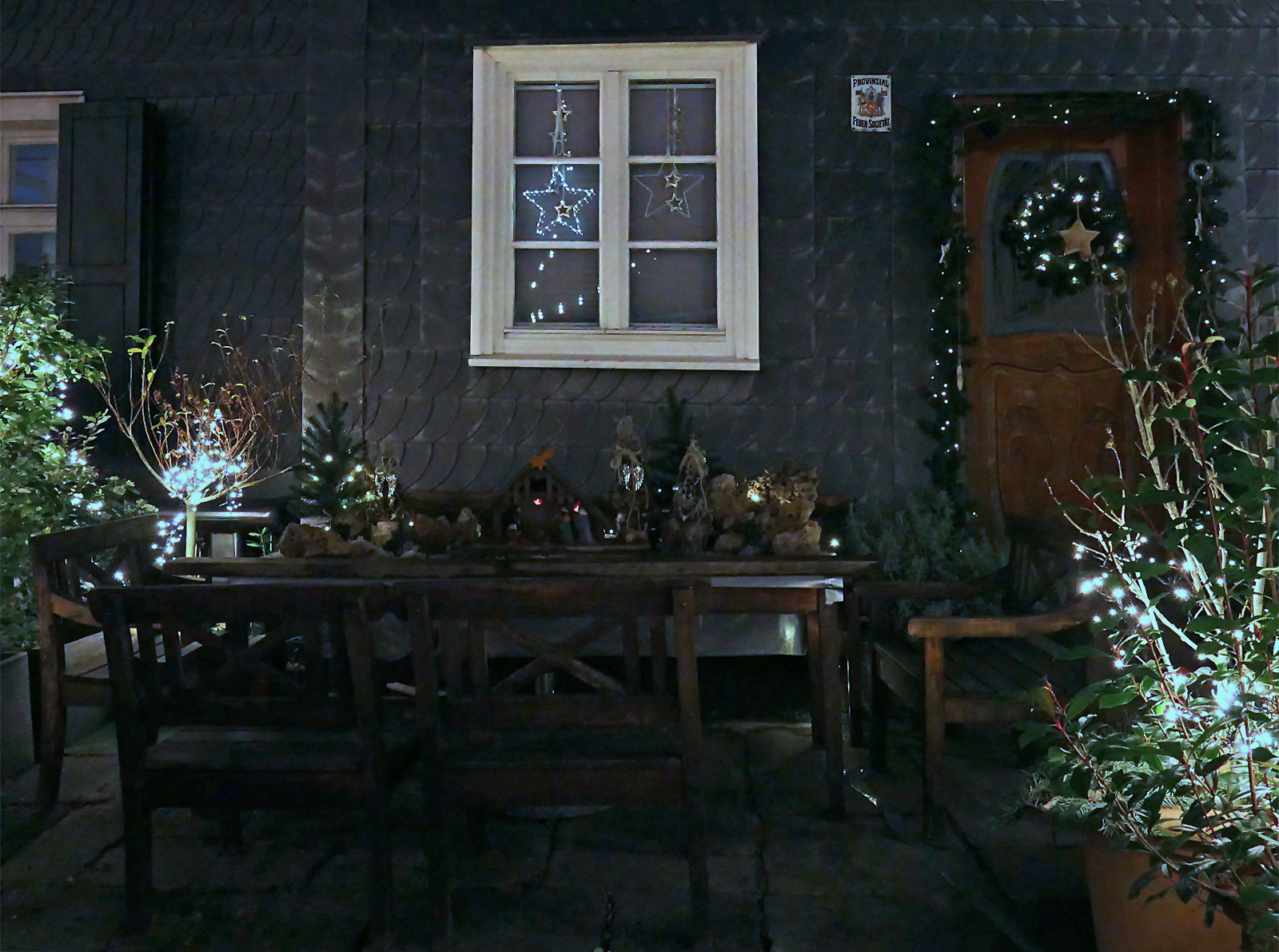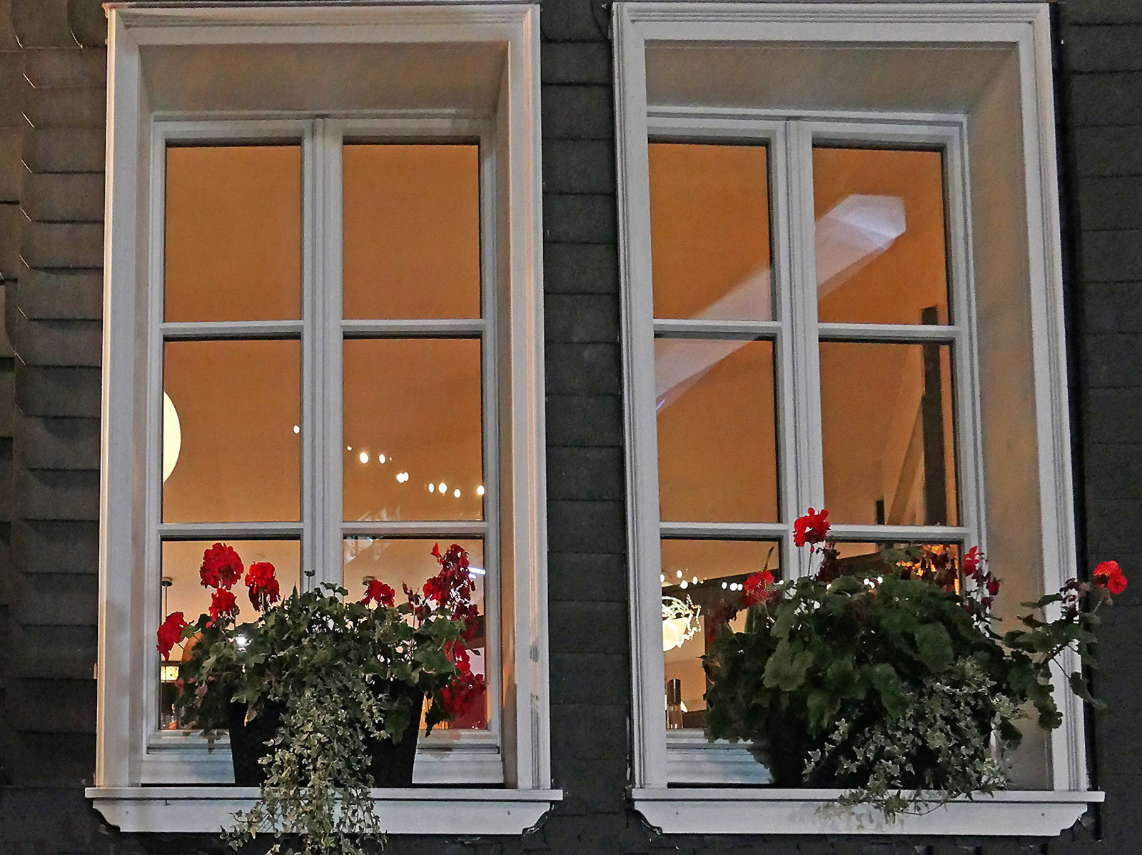 Und … bei all der (vor-) weihnachtlichen Idylle: Es gibt tatsächlich noch sommerliche Fenster mit blühenden Geranien …