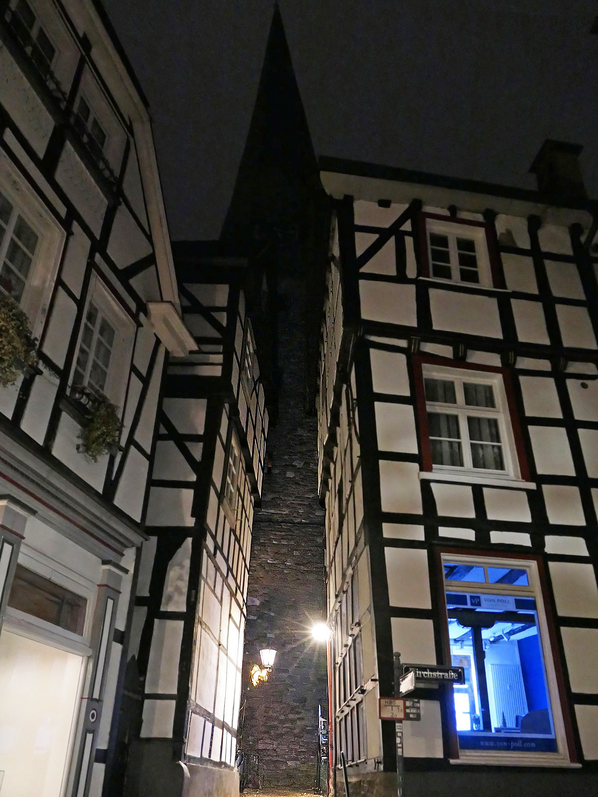 Vom Kirchplatz aus führen an mehreren Stellen schmale Treppenwege hinunter in die Hattinger Altstadt.