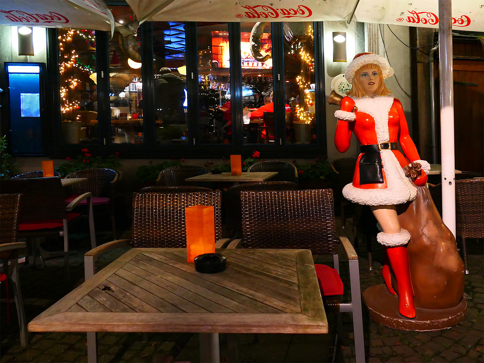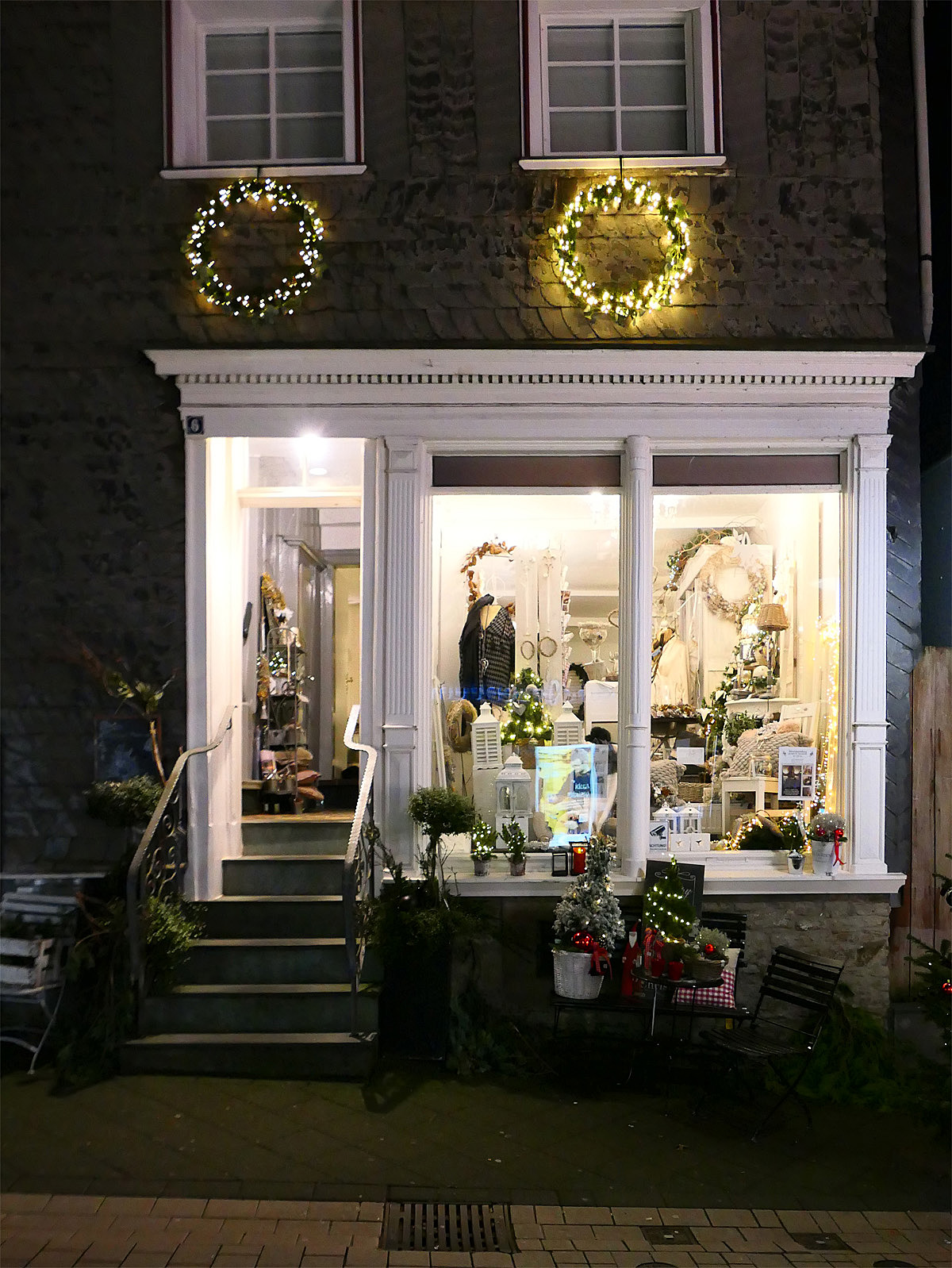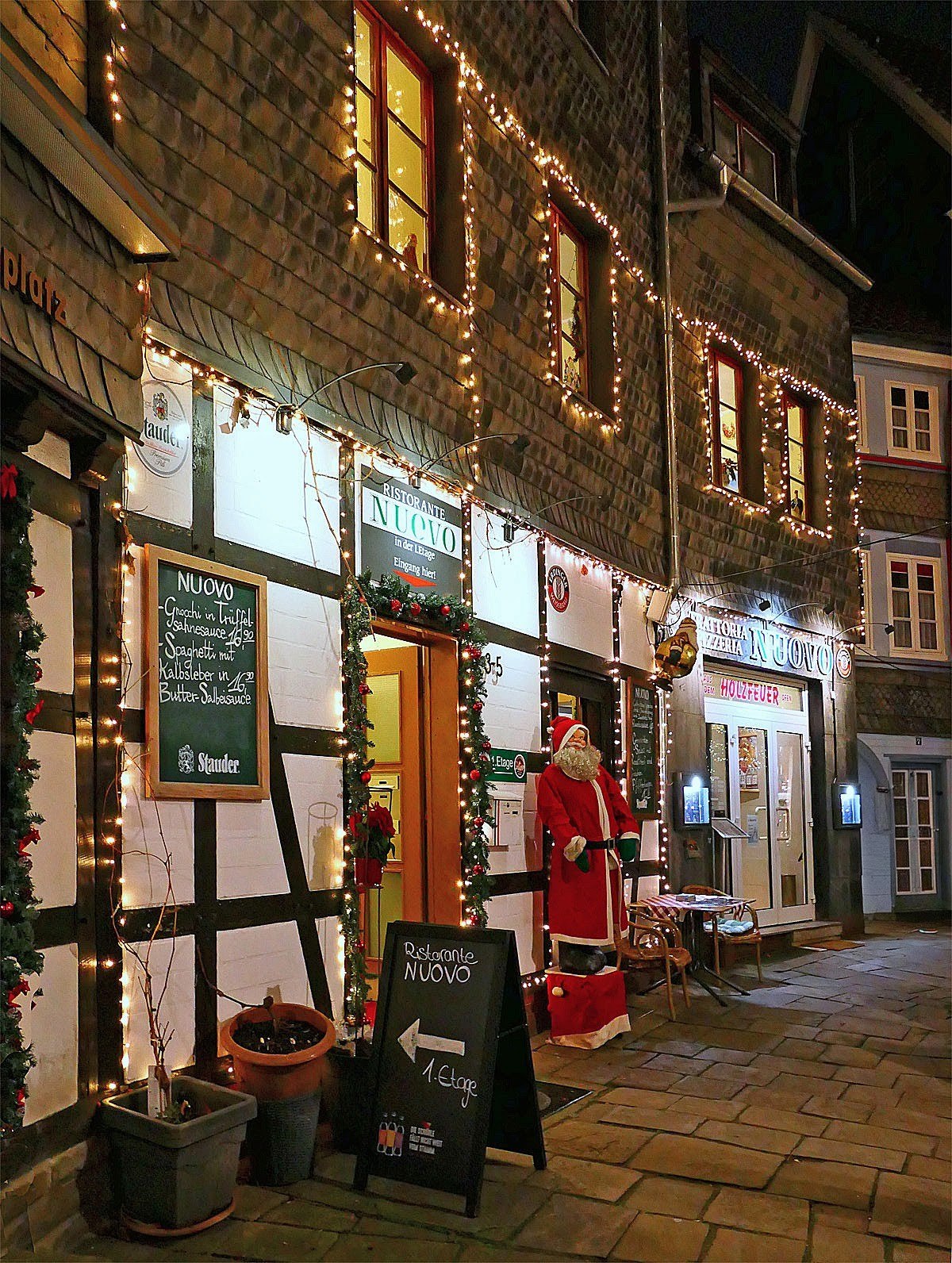 Adventlich geschmückte Gassen, Restaurants und Geschäfte in der Altstadt