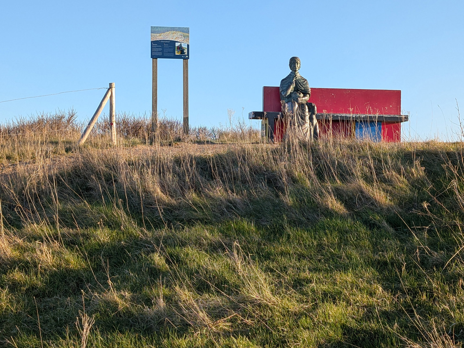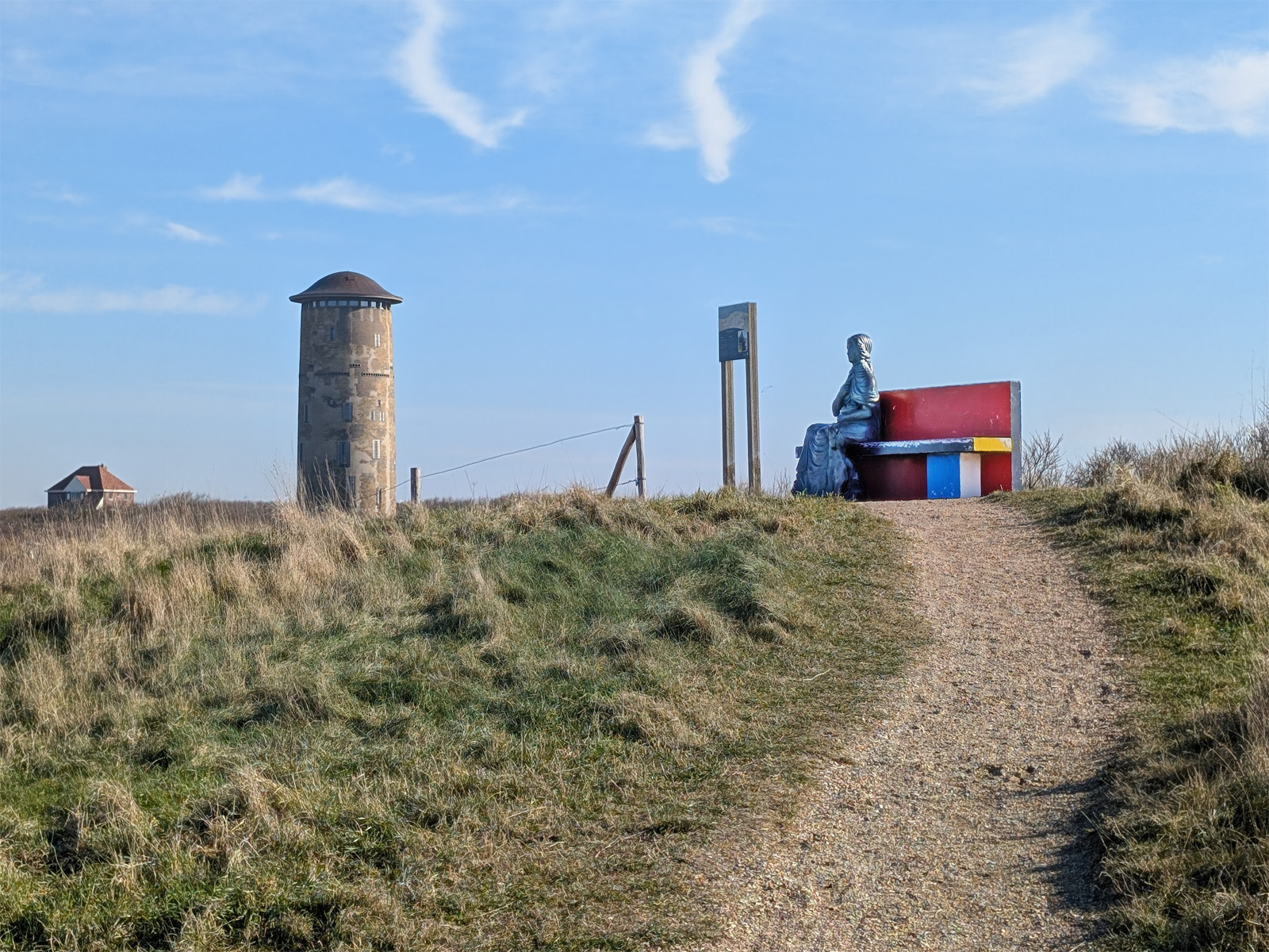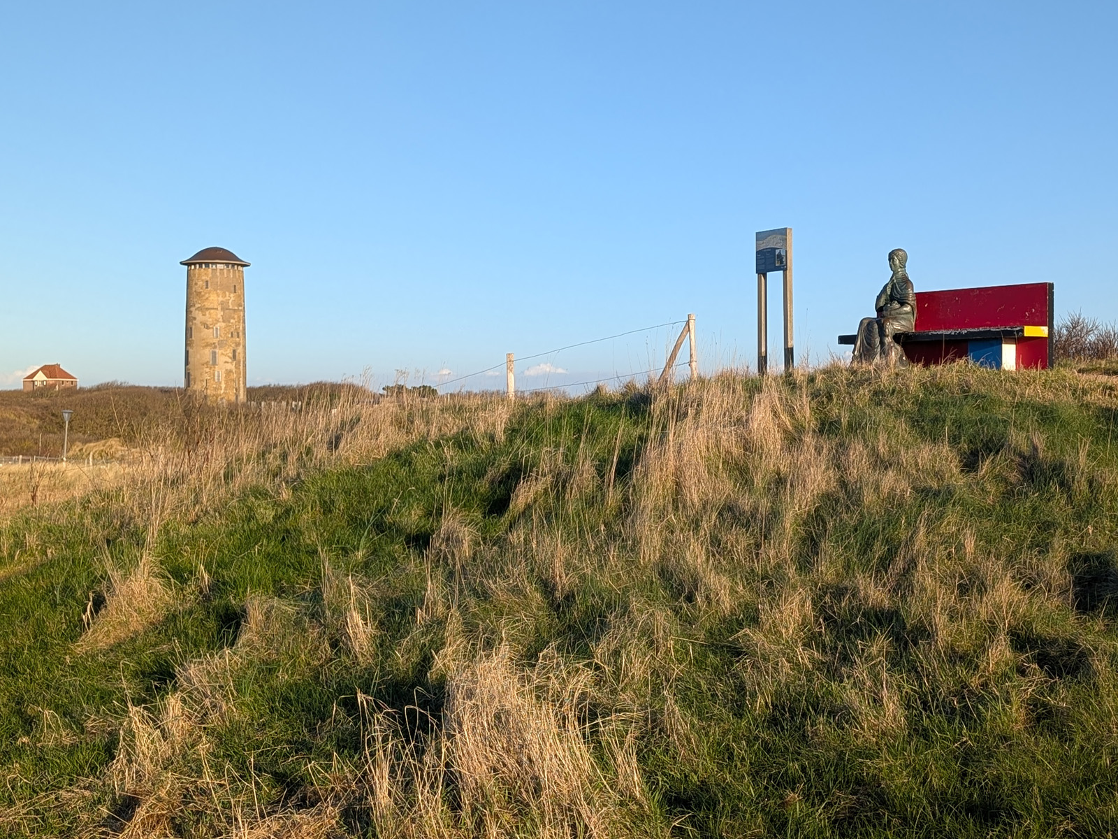 Eine dieser Staffeleien steht etwas abseits vom Ortskern beim alten Wasserturm in den Dünen.