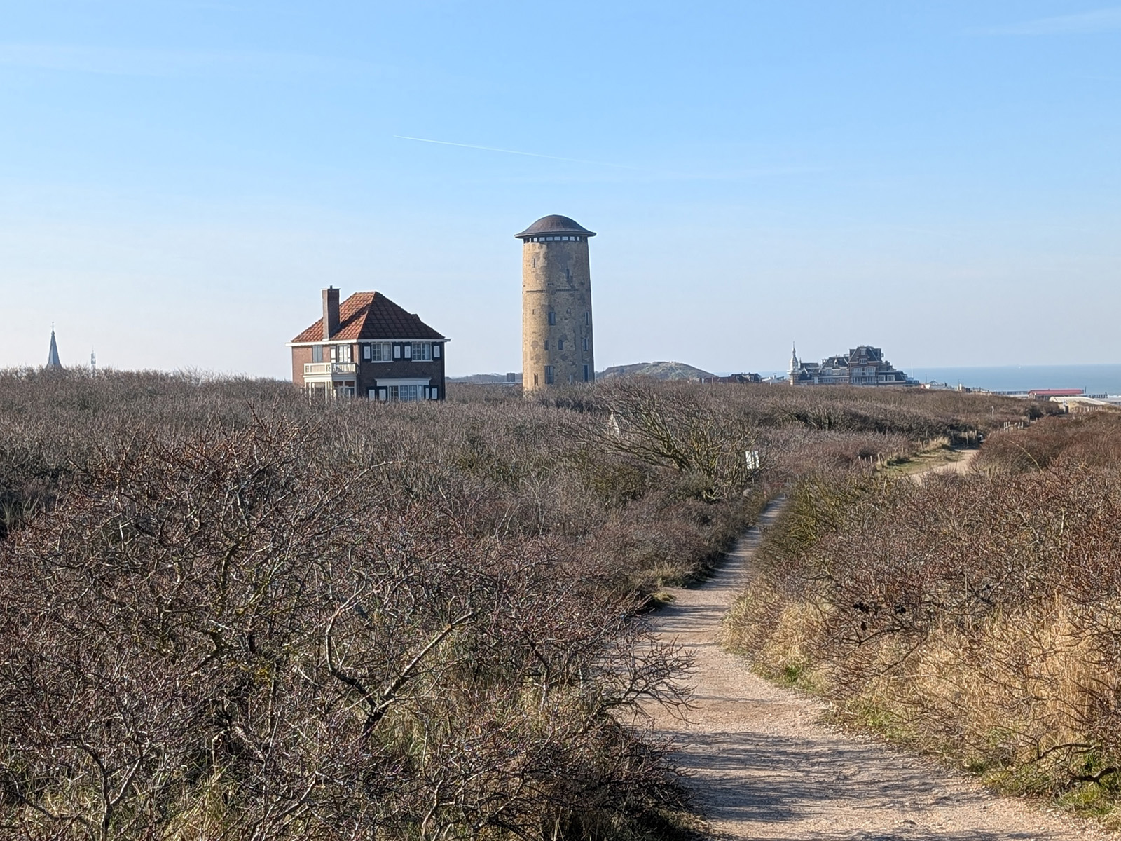 Ja, man sieht den Leuchtturm von Westkapelle tatsächlich von diesem Punkt aus in der Ferne einsam aus der Landschaft ragen.