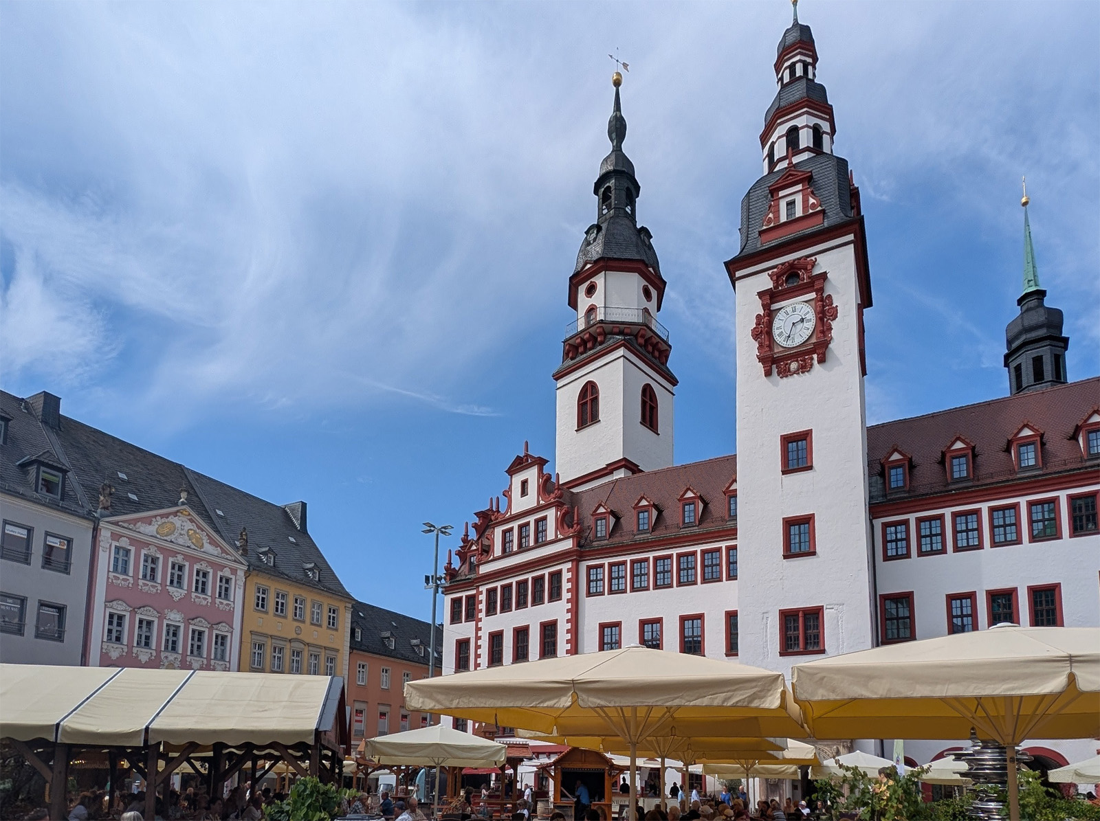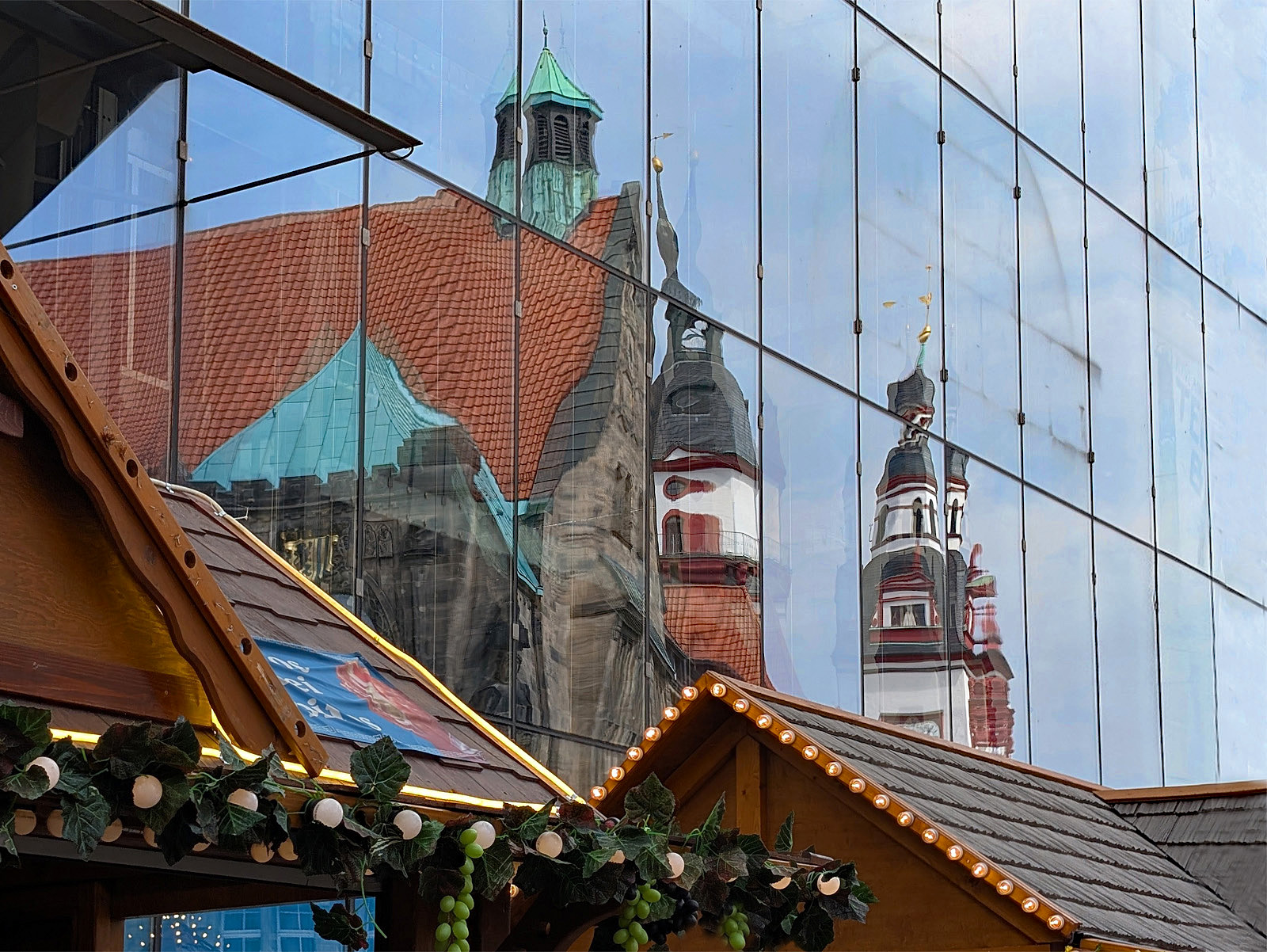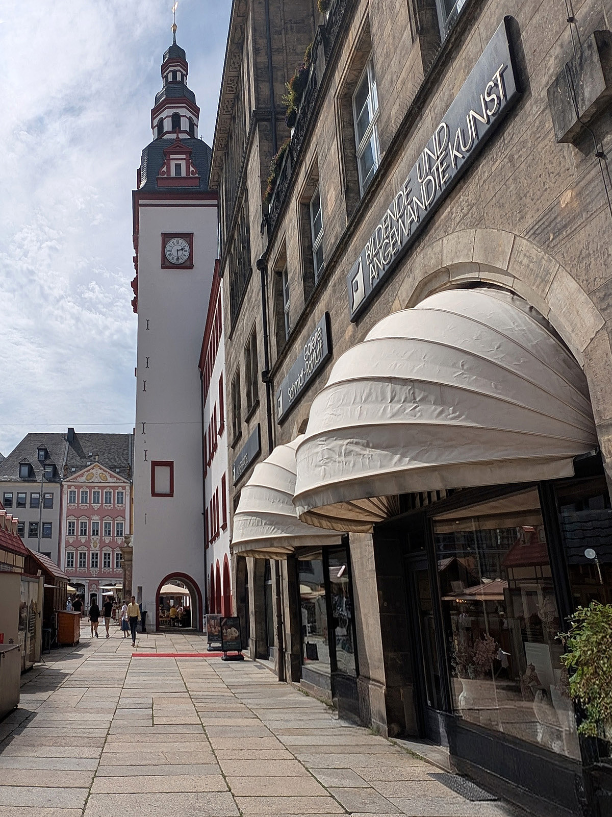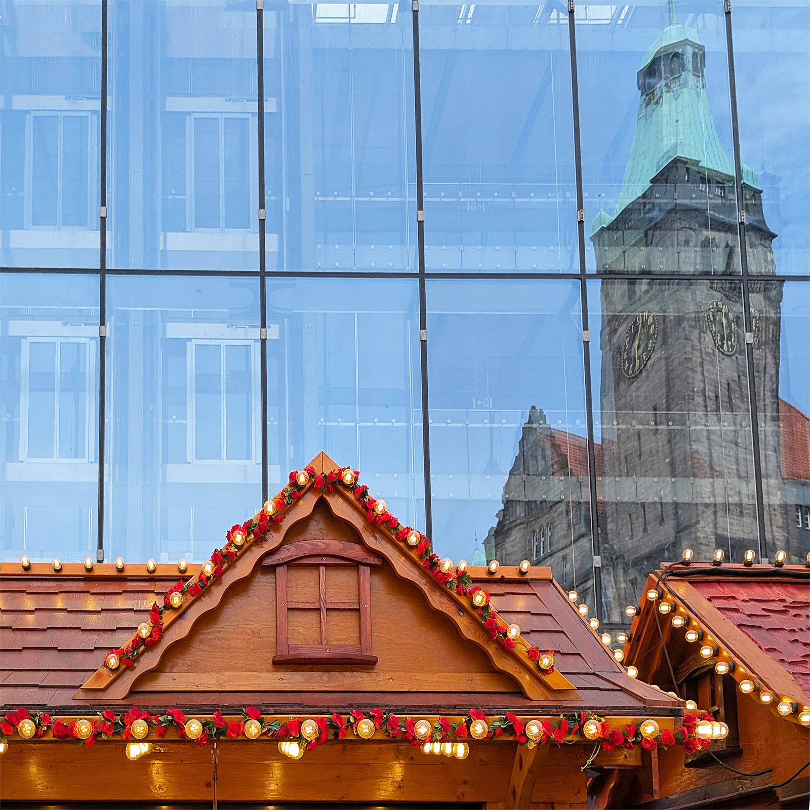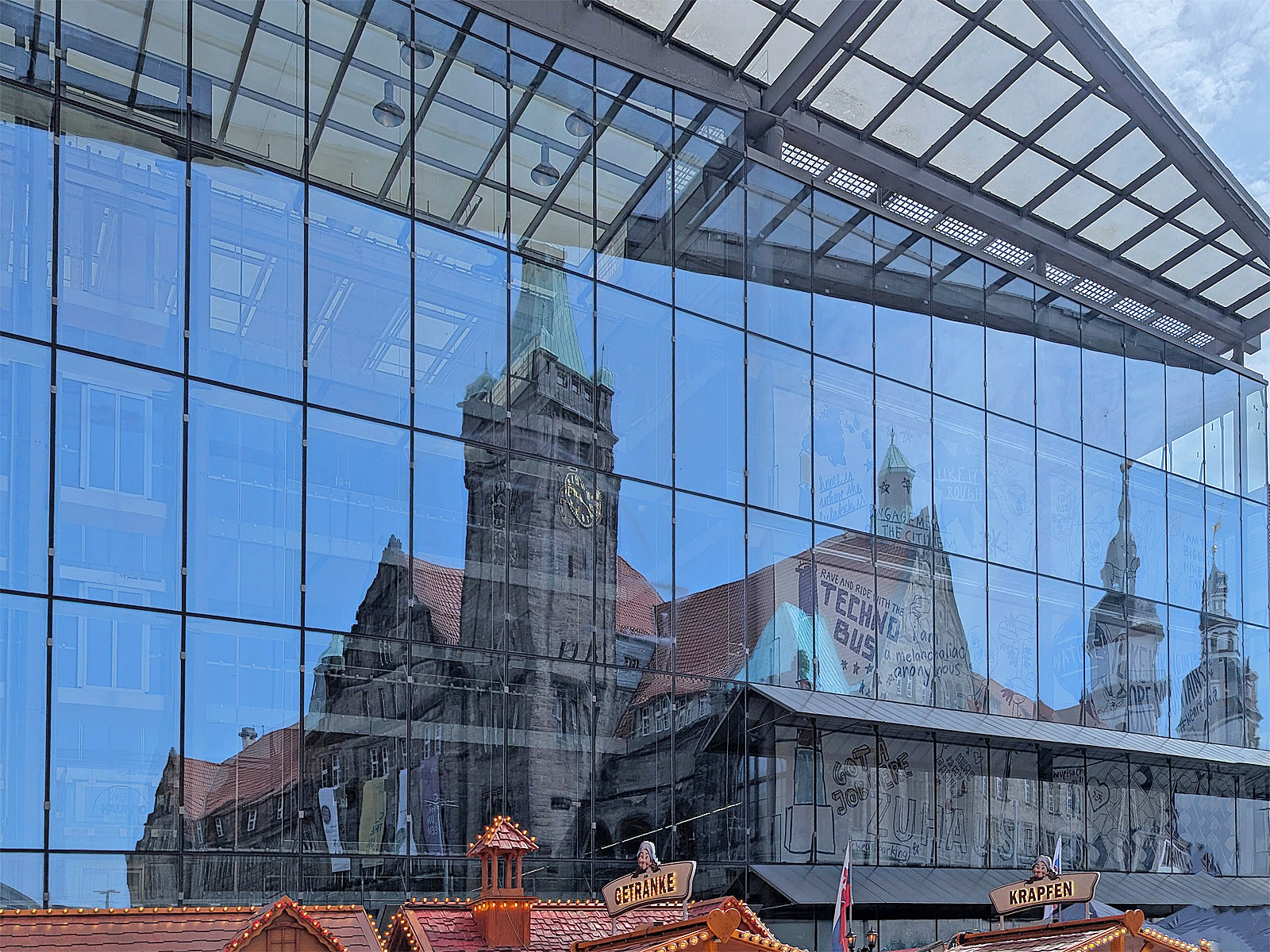 Das Stadtbild von Chemnitz, das auf Wunsch der DDR-Regierung 1953 umbenannt wurde in “Karl Marx Stadt” und bis 1990 so hieß, ist bis heute unausgewogen. Die verbliebene und gut restaurierte kleine Altstadt steht schon in großem Kontrast zu neuen Einkaufszentren mit z.T. spiegelnden Glasfassaden.ㅤㅤㅤ