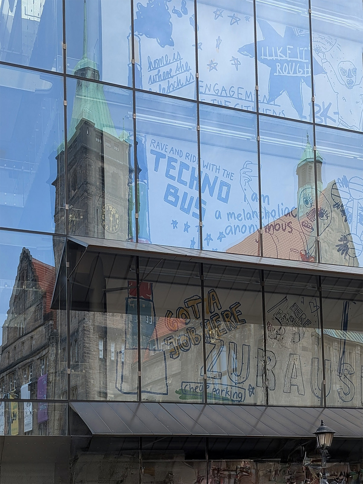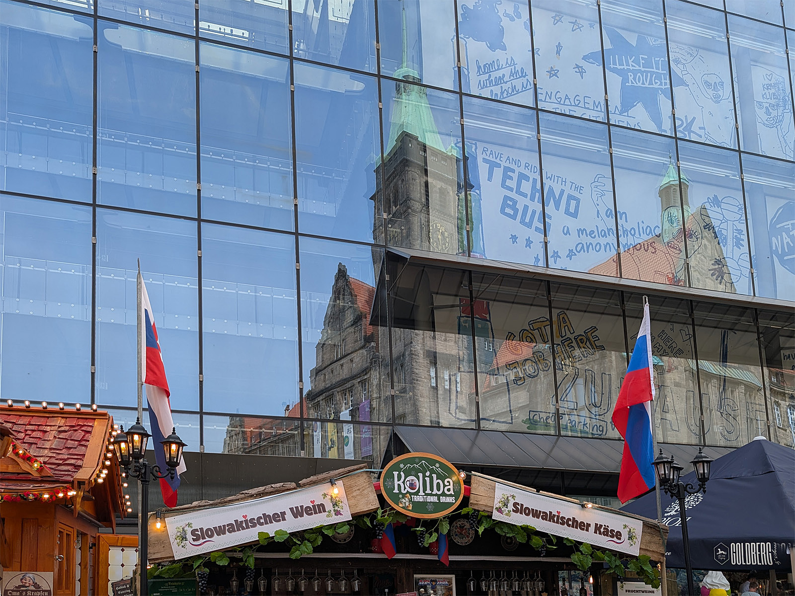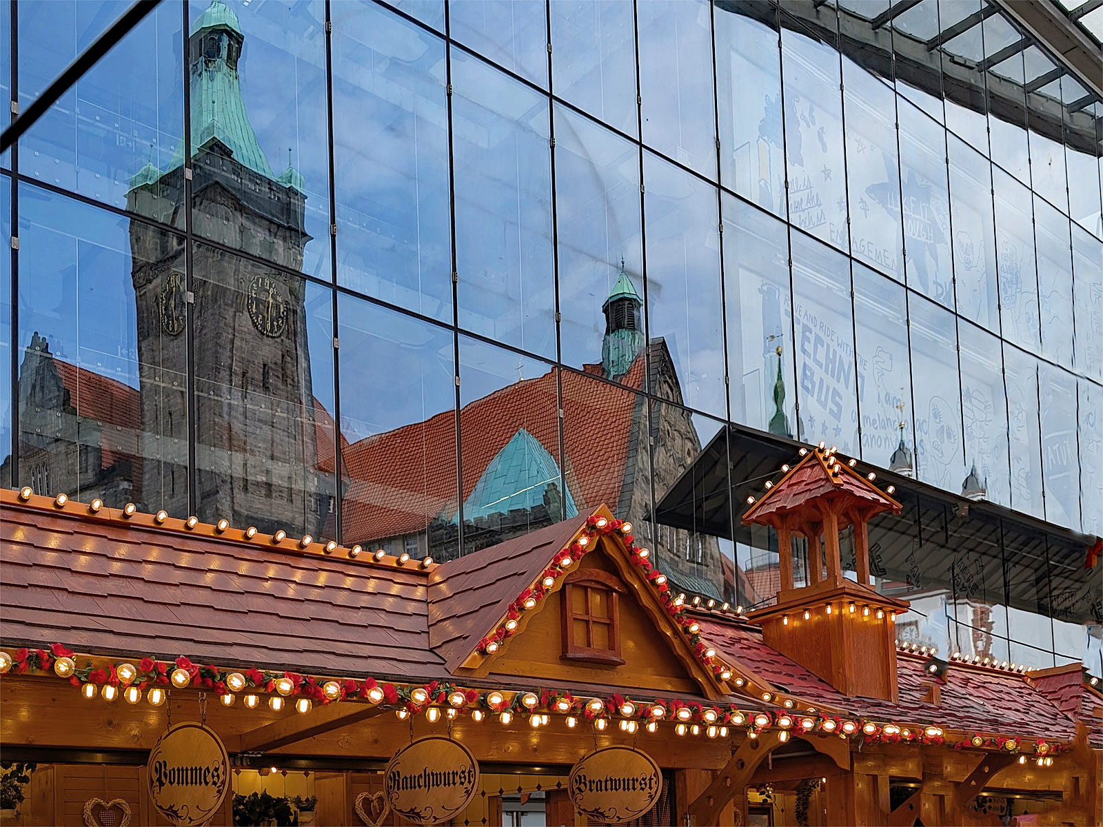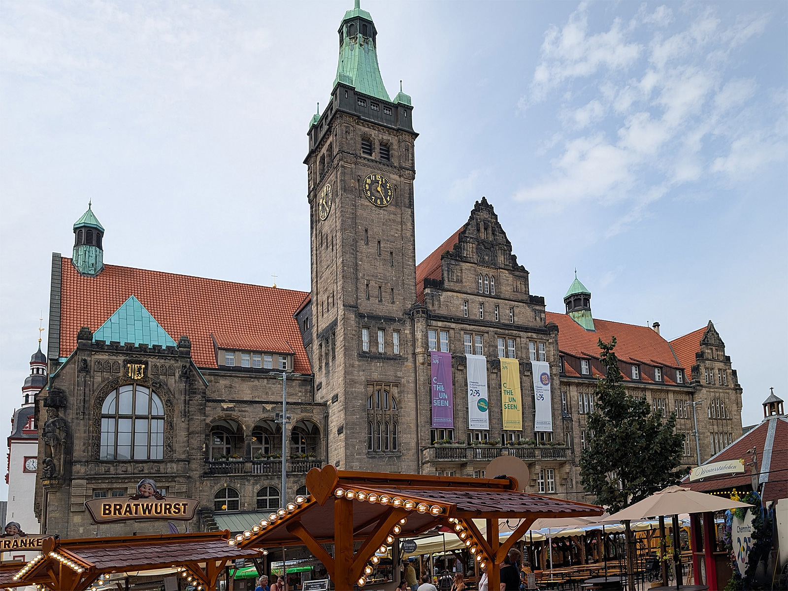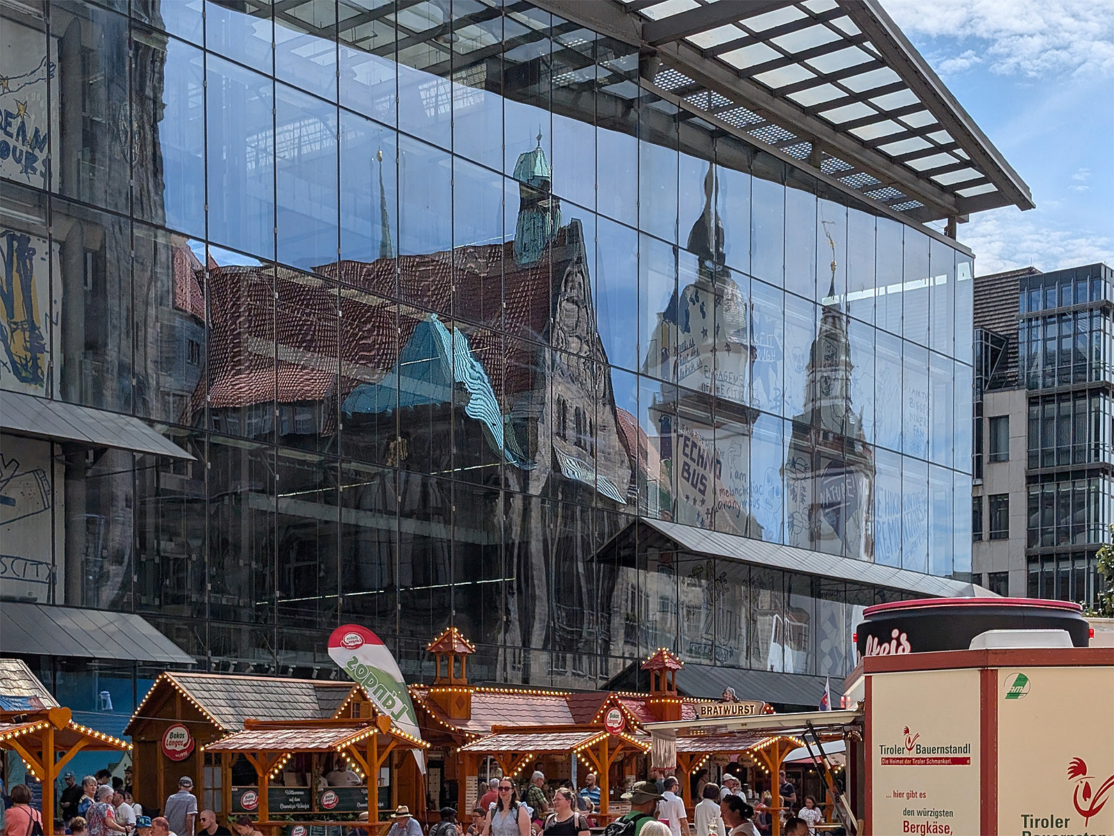 Das Stadtbild von Chemnitz, das auf Wunsch der DDR-Regierung 1953 umbenannt wurde in “Karl Marx Stadt” und bis 1990 so hieß, ist bis heute unausgewogen. Die verbliebene und gut restaurierte kleine Altstadt steht schon in großem Kontrast zu neuen Einkaufszentren mit z.T. spiegelnden Glasfassaden.ㅤㅤㅤ