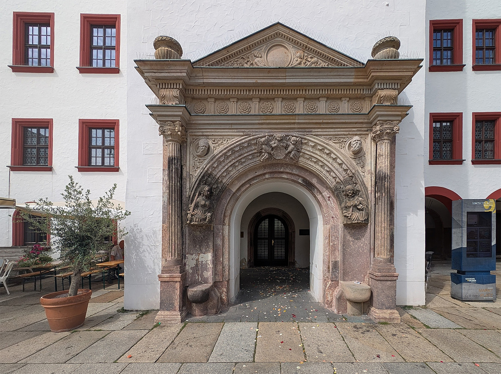 Das Alte Rathaus ist – rechts um die Ecke – direkter Nachbar der Jakobikirche – oder korrekt: Ev.-Luth. St.-Jakobi-Kreuz-Kirchgemeinde.