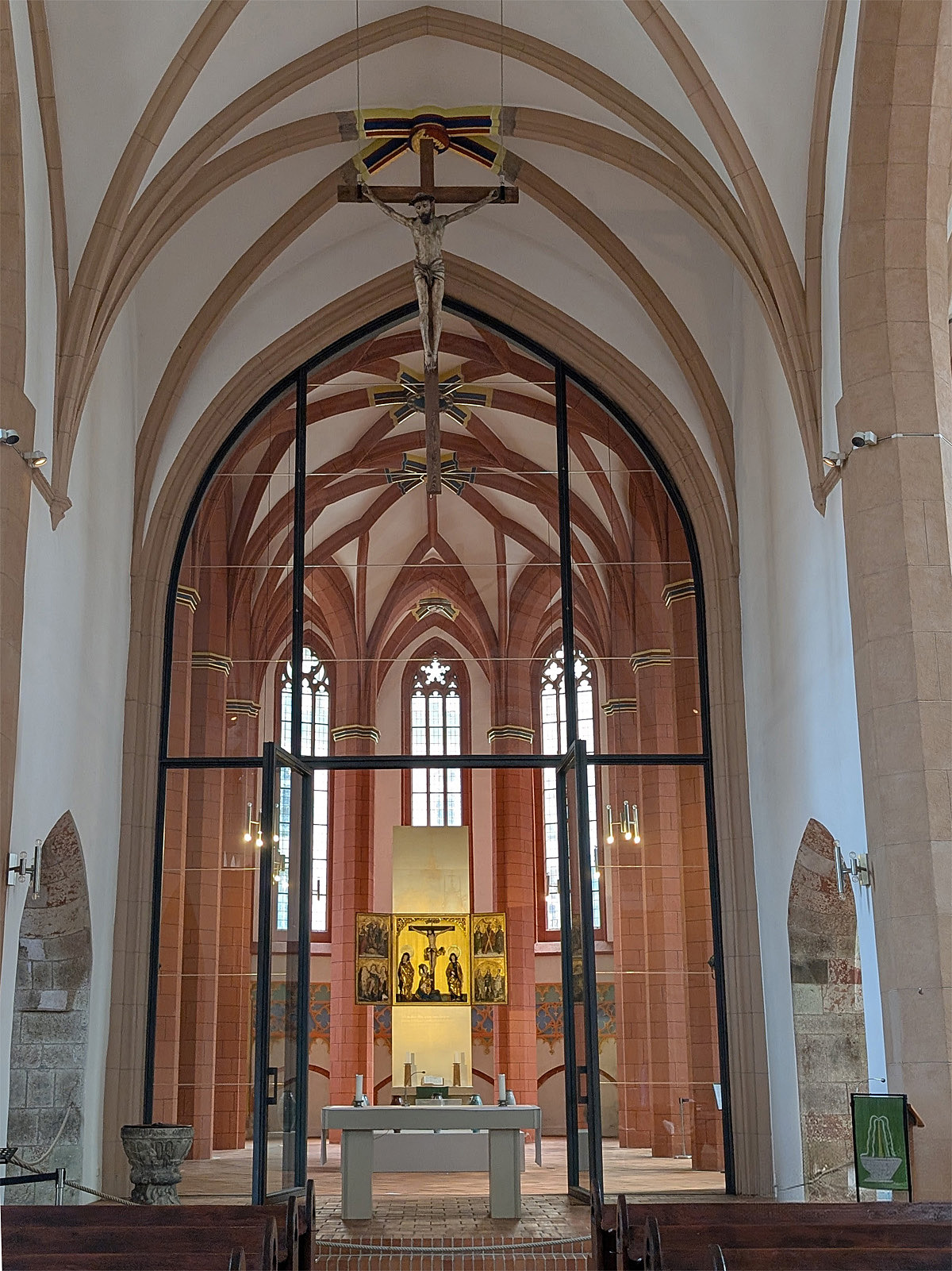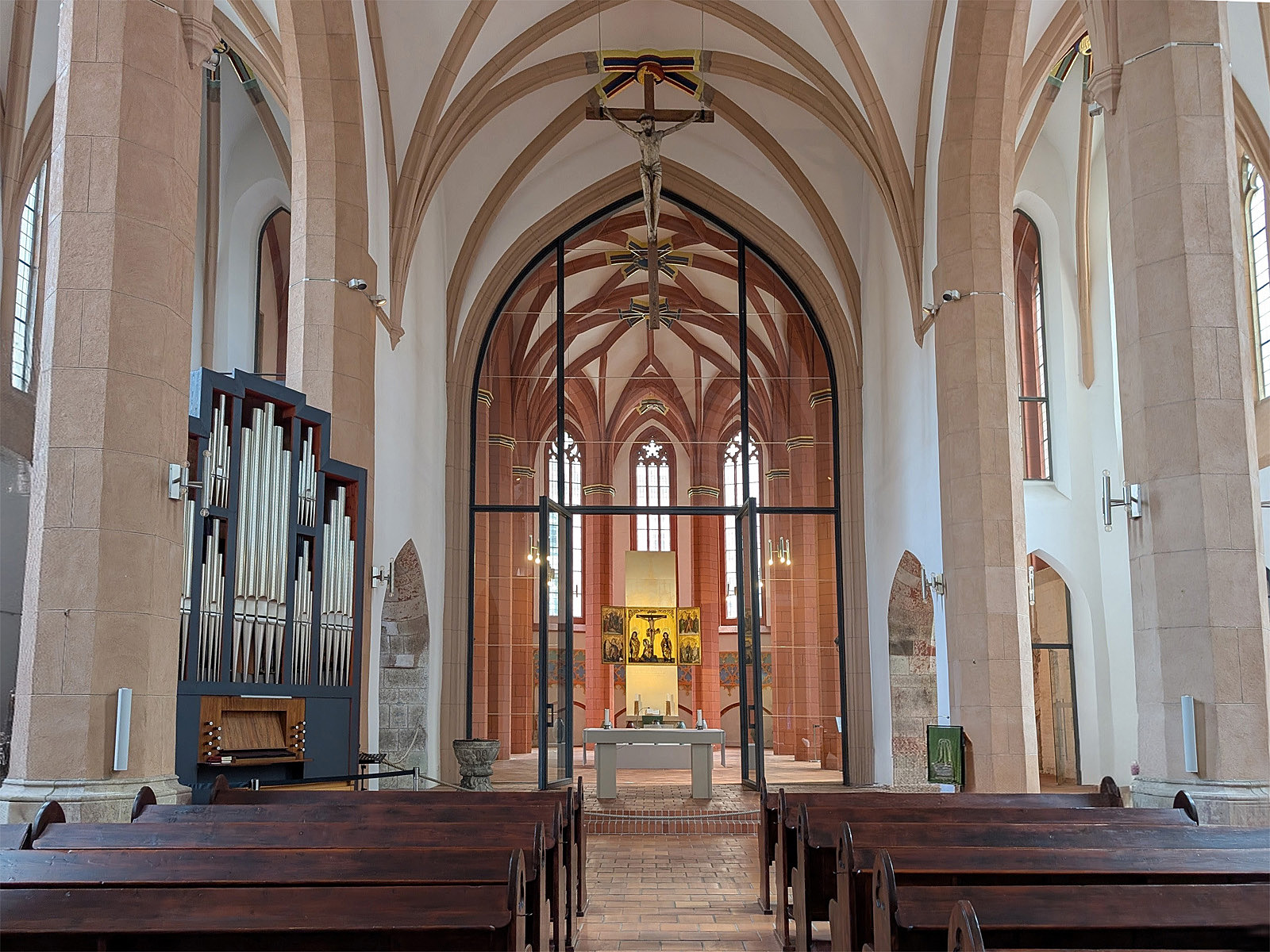 Nach romanischen Vorgängerbauten entstand nach 1350 die dreischiffige Hallenkirche. Der wunderschöne Chor wurde 1405/1412 angefügt. Durch die Jahrhunderte erfuhr die Kirche samt ihrer Orgel eine sehr wechselvolle Geschichte u.a. mit Bränden und Umbauten nach dem jeweiligen Geschmack der Zeit