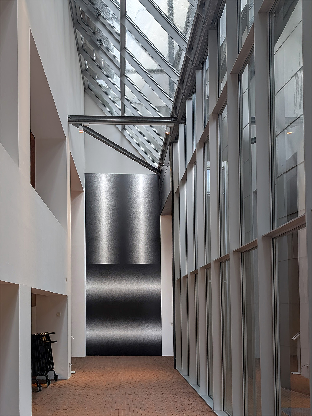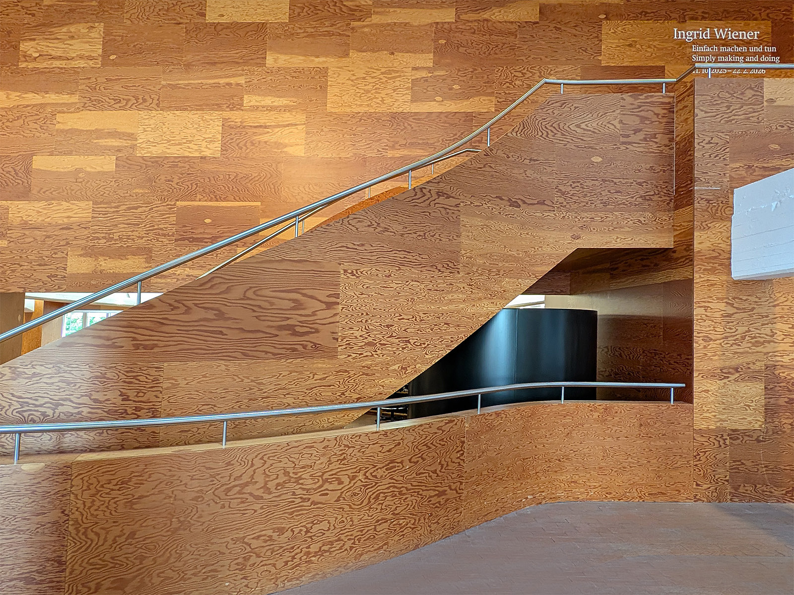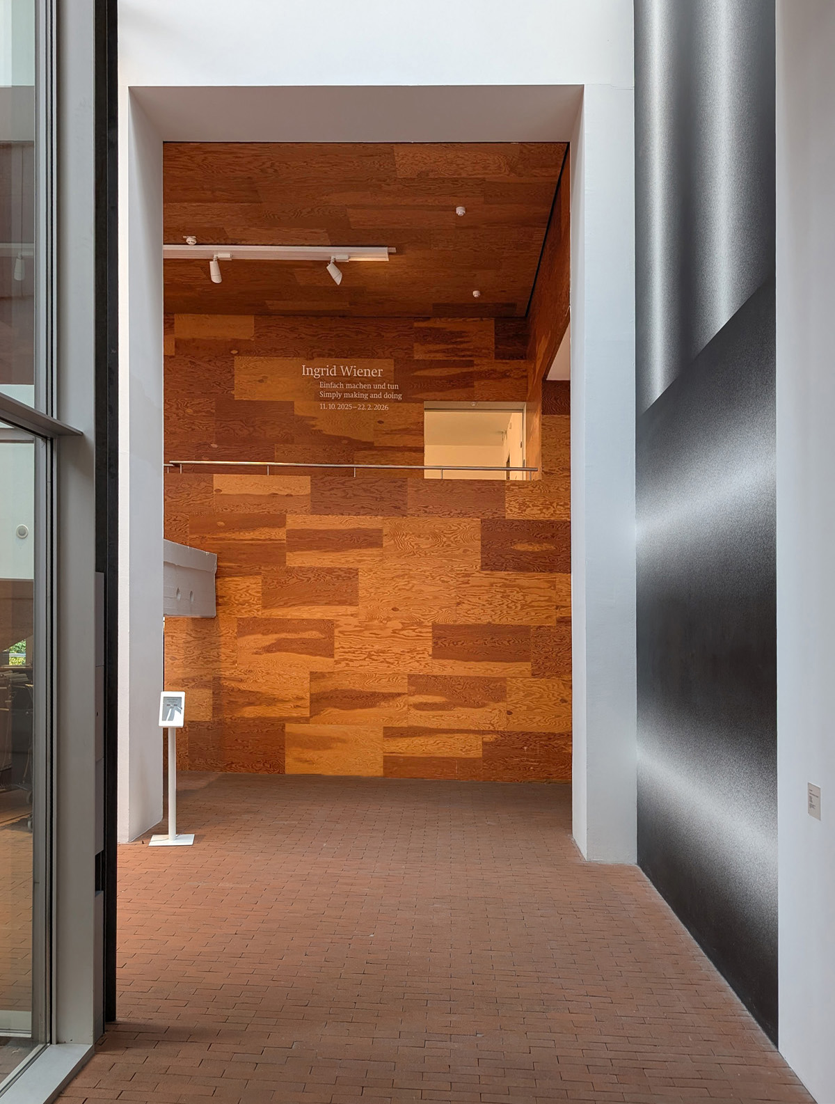 Die aktuelle Ausstellung im Obergeschoss zeigt die ungewöhnlichen Gobelins der Künstlerin Ingrid Wiener, auf deren Textilien durchaus nicht erwartete Dinge zu sehen sind, wie z.B. Kabelsalat oder mathematische Formeln.