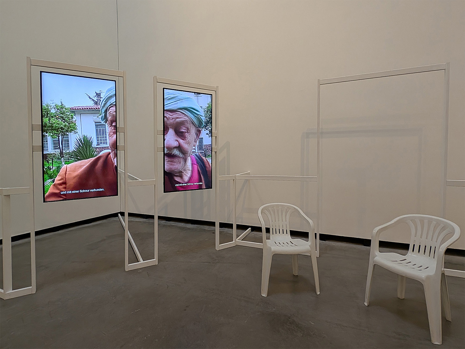 Im Ausstellungsbereich auf der unteren Etage kann man momentan die Installationen des in Algerien geborenen Mohamed Bourrouissa sehen. In der Ausstellung mit dem Titel Pour Noubia macht er in Videos, mit Bildern und Figuren auf das Thema Gewalt und Rassismus im Alltag – ausgehend von kolonialistischen Ideologien – aufmerksam. In sehr persönlichen, fast intimen Gesprächen kann man daran teilhaben, wie die davon Betroffenen ihr Leben und ihre Würde zurückgewinnen.