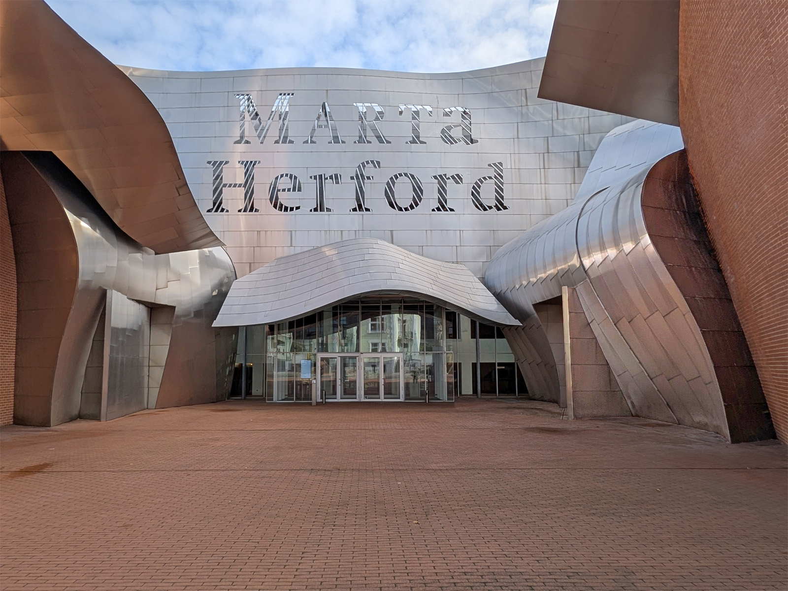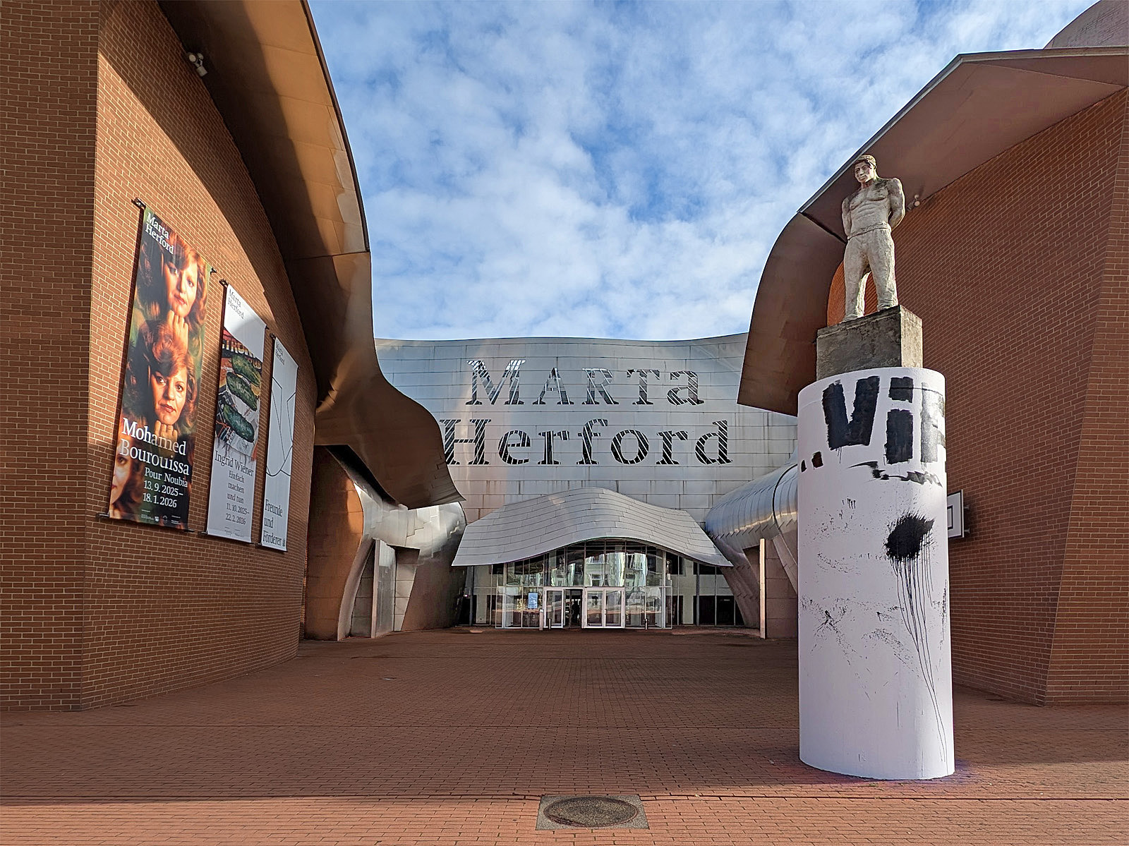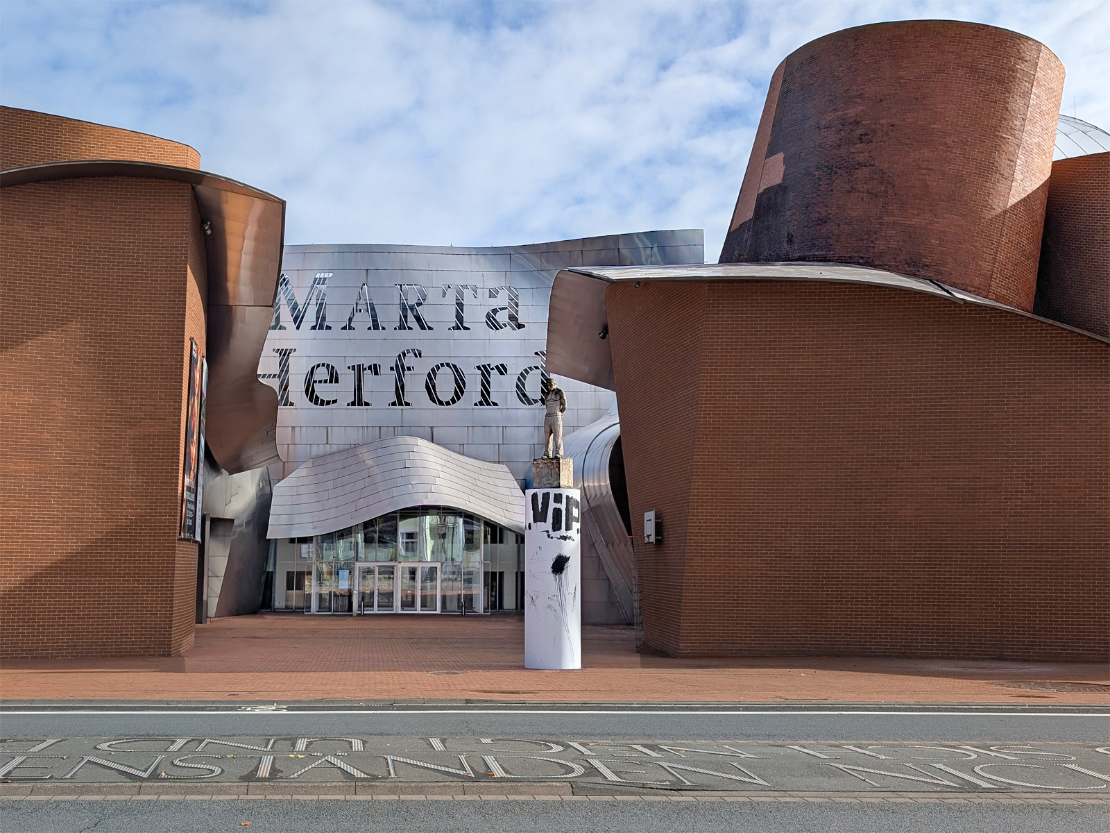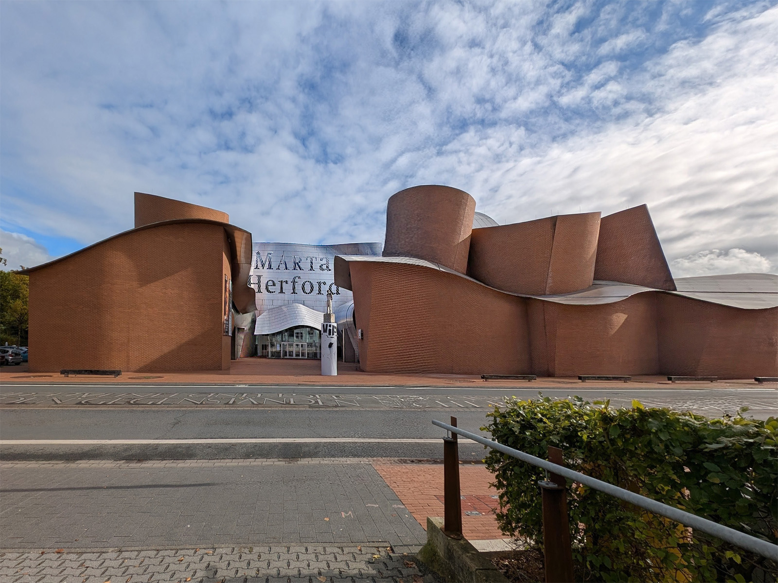 Ungewöhnlich ist auch Marta selbst. In der alten Hansestadt Herford gibt es allein im Zentrumsbereich fünf mittelalterliche Kirchen. Das eine solche – zudem relativ kleine – Stadt, gelegen im Teutoburger Land, ein so modernes Museum umsetzen konnte und es dann auch noch von einem der bekanntesten internationalen Architekten unserer Zeit hat entwerfen lassen, ist schon beachtlich. Mit all seinen Wellen und Asymmetrien ist es ein unverkennbarer Gehry-Bau geworden.