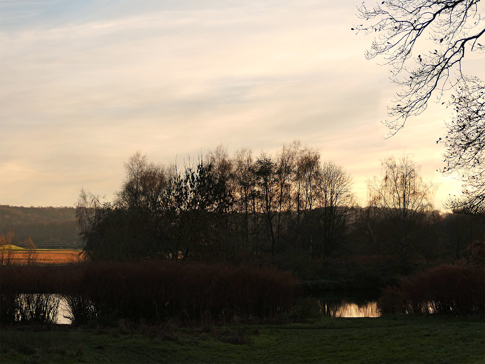 Natürlich sind es letztlich immer dieselben Motive, die meine Aufmerksamkeit erregen. Aber – nicht immer und zu allen Zeiten: Ich habe meine Aufnahmen daraufhin noch einmal überprüft, aber auch in diesem Jahr habe ich in den “grünen Monaten” – von Frühjahr bis Frühherbst – keine Fotos von der Ruhraue gemacht, obwohl wir natürlich auch dann dort spazieren gegangen sind. Durch das volle grüne Laub verschwinden in diesen Monaten Konturen und Prägnanz der Landschaftselemente. Ich “sehe” dann kein Bild.