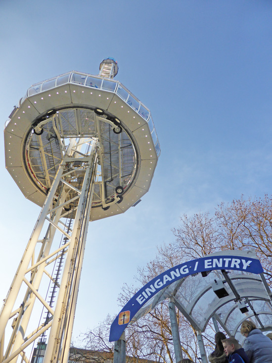 Insgesamt ist der Tower 81 m hoch. Von der riesigen Aussichtsplattform kann man vom 20. Januar bis zum 12. März aus 72 m Höhe einen imposanten Blick auf die Essener Skyline genießen (Öffnungszeiten etc.).