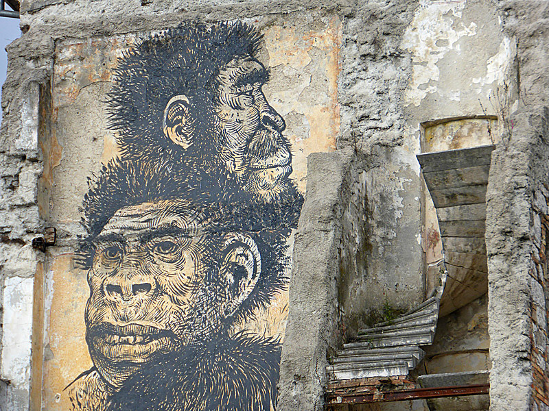 Es handelt sich um ein Abrisshaus – großzügig mit Affen bemalt.